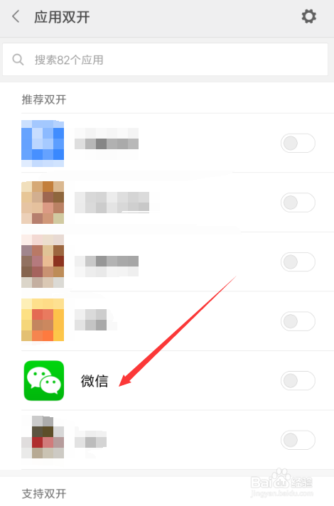 在应用双开里找到要双开的微信