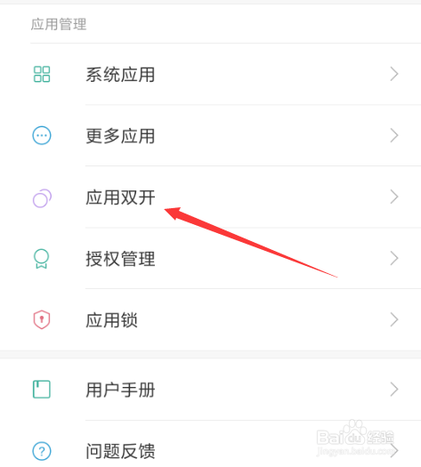 在设置的应用办理一栏找到应用双开