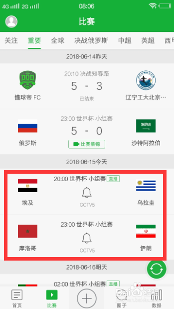 点击首页左下方的角逐图标,进入角逐窗口。我们可以在角逐窗口看到相关的角逐信息,包罗角逐时候,球队、还可以设置闹铃,在角逐起头前15分钟会提醒你不雅看角逐。