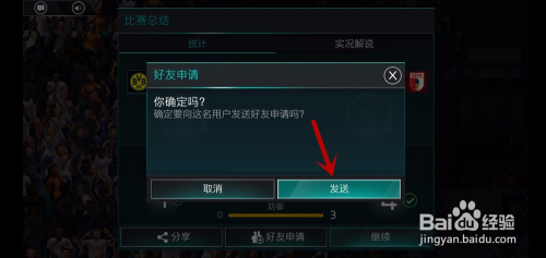 然后在弹出来的界面,我们点击【发送】即可将老友申请的信息发送给对方,会有提醒,期待对方赞成,即可添加老友当作功,如图所示。