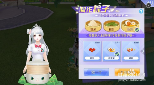 首先看看各类粽子的配方是什么吧,此刻按配方验证一下建造一个蛋黄粽子吧