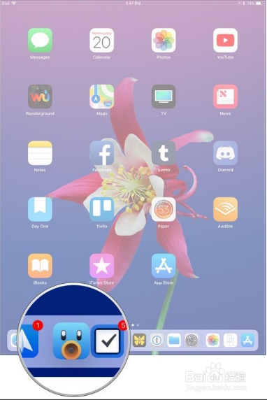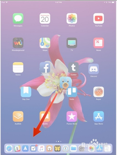 2、从屏幕底部标的目的上滑动,直到呈现Dock。