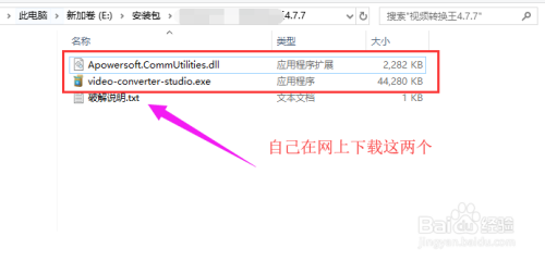 你需要在网上下载视频转化王法式包,还有破解法式,如图所示