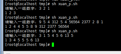 首先我们看下 ,剧本的结果;就是 提醒 输入一组 数字(数字之间要有空格,否则会默认为是一个数字,在linux系统中划分数字,一般以 空格划分)然后将这组数字,从小到年夜从头排序输出;