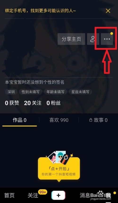 进入小我本家儿页页面后,点击头像右上方的【三点】图标,如图2