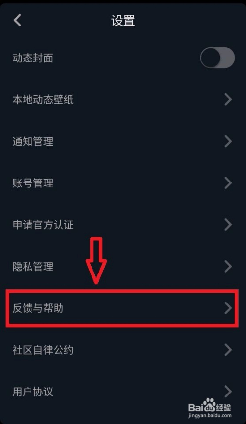 在设置页面中找到【反馈与帮忙】选项并点击进入,如图4