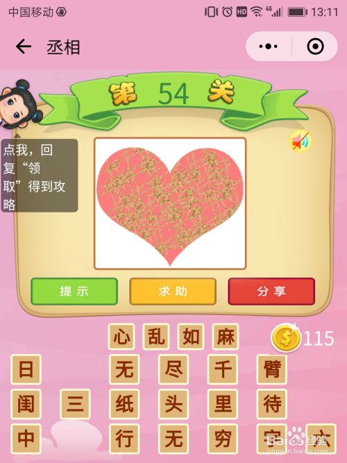丞相54关谜底:注重红色的心里面有什么?颠末细心不雅察后会发现是里面有良多的麻绳,并且麻绳乱糟糟的,这即是当作语【盘根错节】。