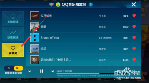我们可以点击收藏夹,点击想听的音乐,这里的音乐是我们QQ音乐收藏夹里的音乐,都是我们喜好的音乐