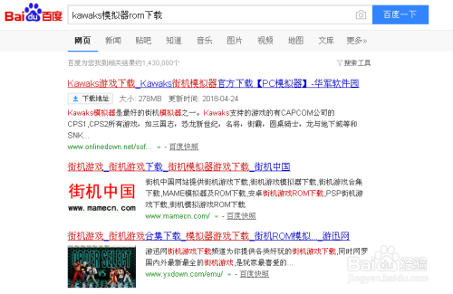 1、再次打开“百度搜刮”,在搜索框中输入“Kawaks模拟器ROM”,这是Kawaks模拟器的街机游戏包,大师可以下载本身喜好的街机游戏包,本人已将全数游戏包下载。