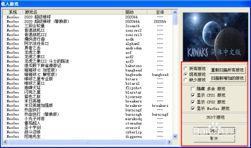 1、打开游戏运行法式“WinKawaks.exe”进入模拟器起头界面。