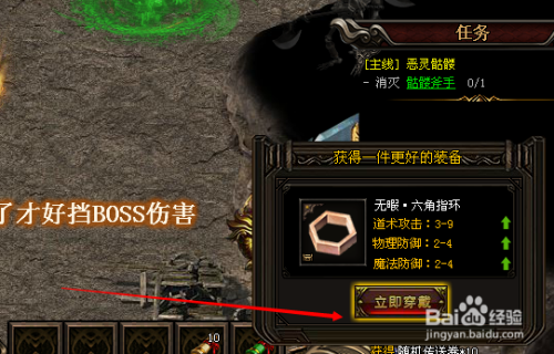 打到好的装备,要当即装备上,如许防御、进犯才高,如图。