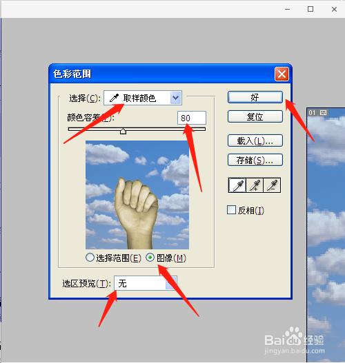 然后将色差的数据进行调整,颜色容差越小,所选的颜色规模越小,选好后就获得所示图像。