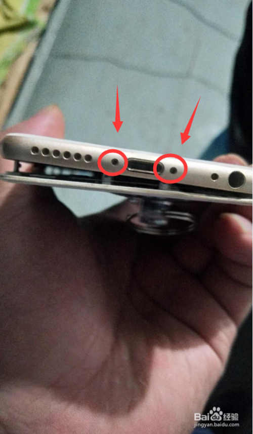 首先将小吸盘沾取少量的水挤压失落空气并吸附在手机屏幕靠下方的位置,再用小螺丝刀拧开手机底部充电接口摆布二侧的小螺丝后拉拽吸盘打开前后盖。