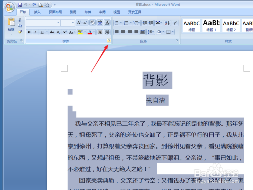 然后如图中箭头所示,点击“起头”下的显示“字体”对话框的按钮。