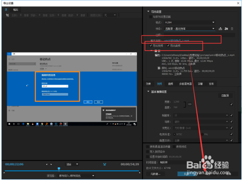 3. 步调2后,在弹出的【导出设置】窗口中,选择【格局】->【H.264】,如图所示。若是想与序列设置匹配,请勾选如图所示的位置。