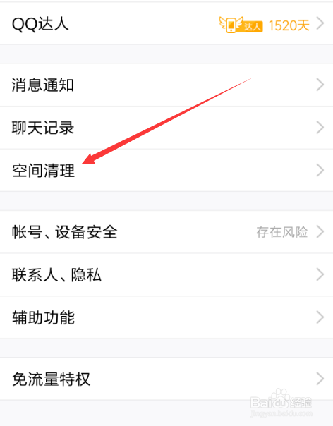 点击QQ存储空间清理,点击下面的清理看环境而定