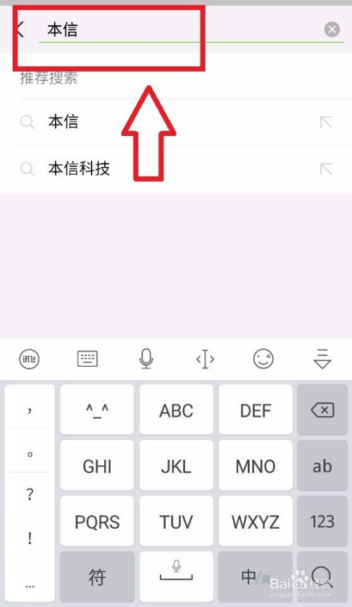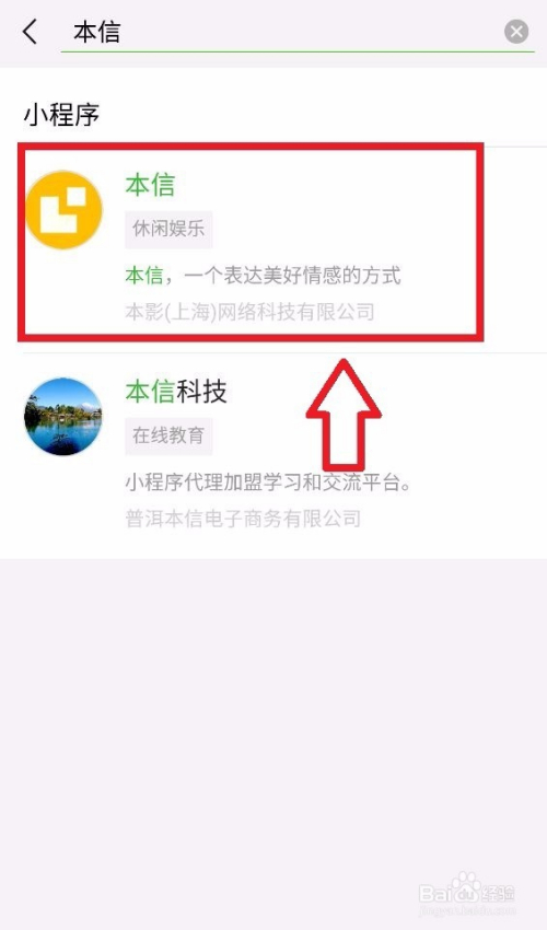在新页面的右上角点击搜刮图标,在搜刮栏中输入【本信】并搜刮,在搜刮成果中点击第一个,如图3.4.5