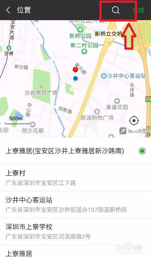 在地图的右上角点击搜刮图标,输入你想定位的具体地址,点击搜刮,然后在搜刮成果中选择你要定位的位置,如图10.11