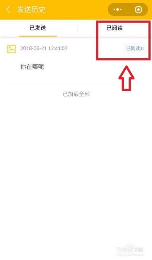 在新页面中就能看到你发送的信息是否已经被阅读了,若是阅读量为0,那申明对方没有查看这条信息。如图16