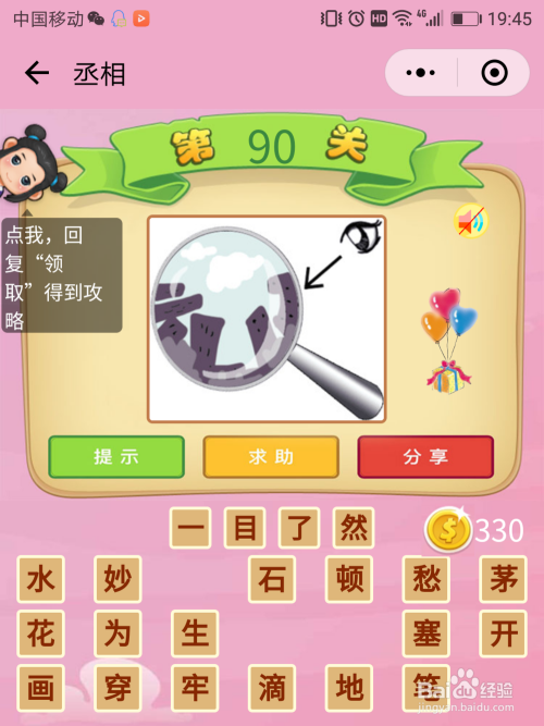 丞相90关谜底:用放年夜镜来看物体天然就看得很是清晰,用放年夜镜之后让人感觉【一目了然】了。