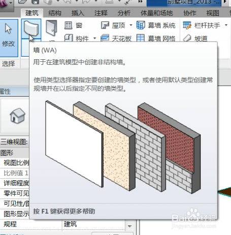 在Revit中,直接输入字母WA便会主动 启动墙的号令