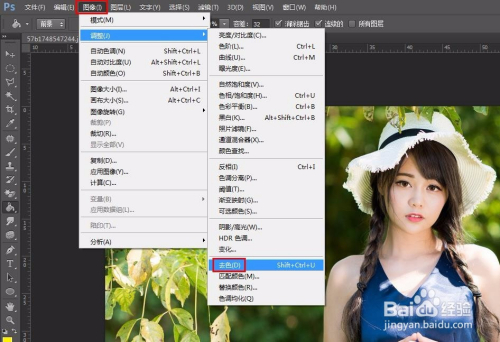 第二步:在菜单栏中选择“图像--调整--去色”(或按shift+Ctrl+U键)。