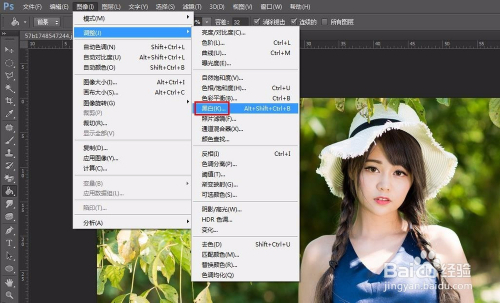 第二步:在菜单栏中选择“图像--调整--口角”。