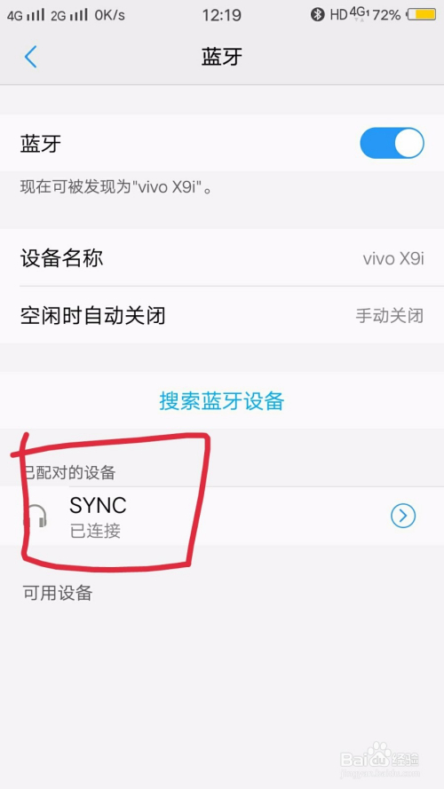 我们拿出vivo手机,打开蓝牙功能,而且搜刮四周的蓝牙设备,你就会看到汽车的蓝牙名称,然后点击选中。
