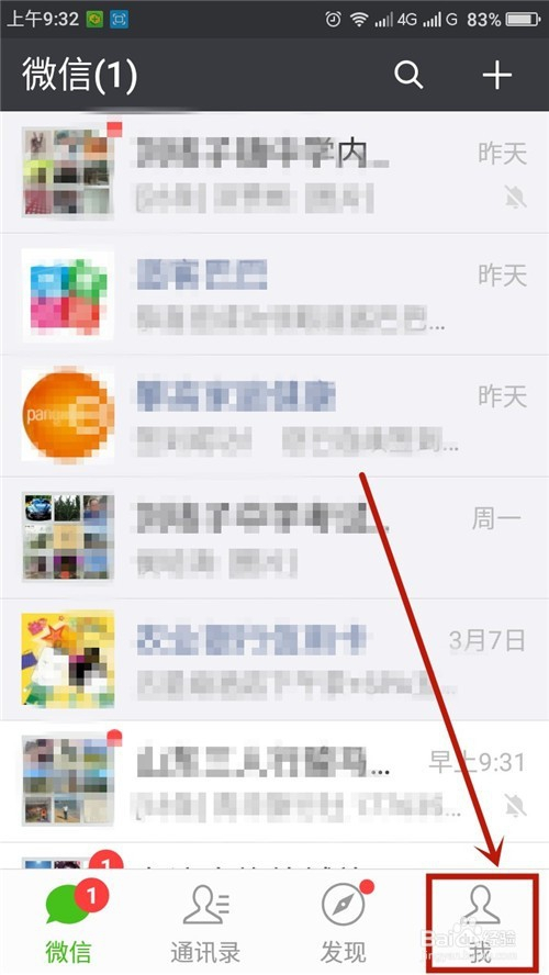 在手机微信app首页右下角找到“我”并点击