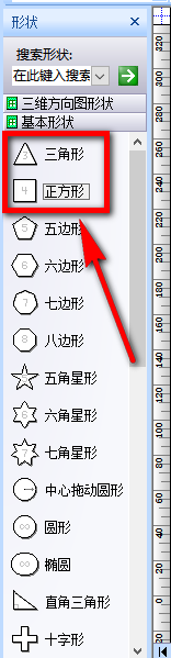 接着我们在编纂窗口左侧栏目中就可以看到良多图形了,我们选择此中的两种图形拖动到画布上,案例中我们选择正方形和三角形。