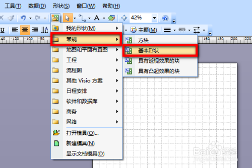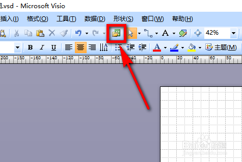 首先打开visio软件,在软件上方的东西栏中点击【外形】图标,如图所示。