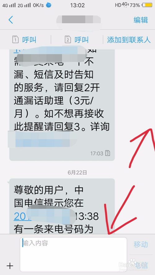 在打开的短信中,我们只要用两个手指缩放就可以,就像是看图片放年夜缩小一样。你会看到往外字体味放年夜,往里字体就会缩小,很是便利。