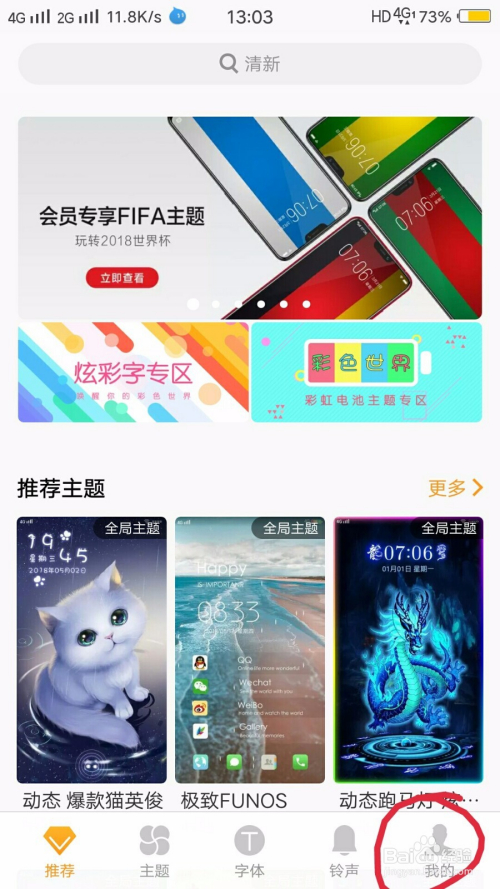 在壁纸页面中,我们选择右下角的‘我的’,然后继续选择‘字体’