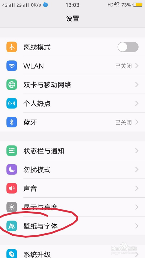 第二种就是在设置中打开了,我们找到vivo手机的设置进口,点击进入看到有一个‘壁纸与字体’点击打开。