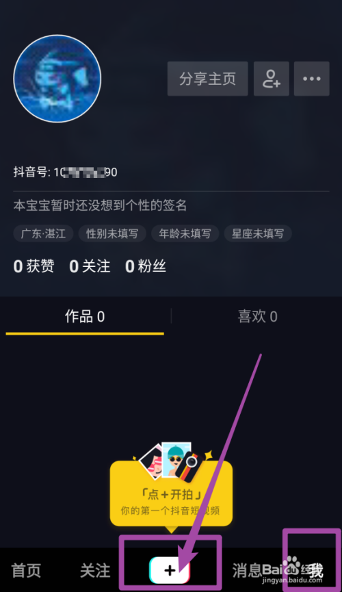首先打开抖音,点击【我】—下面的【+】进入视频拍摄
