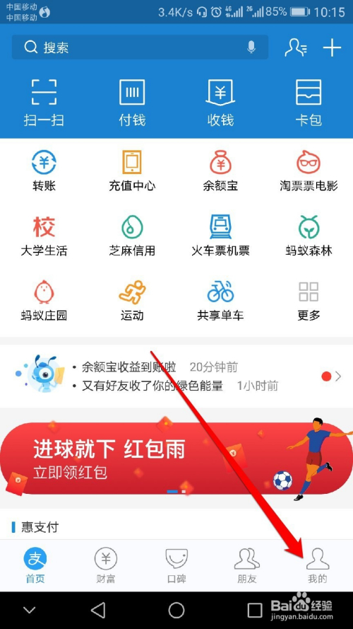 首先打开付出宝,点击【我的】