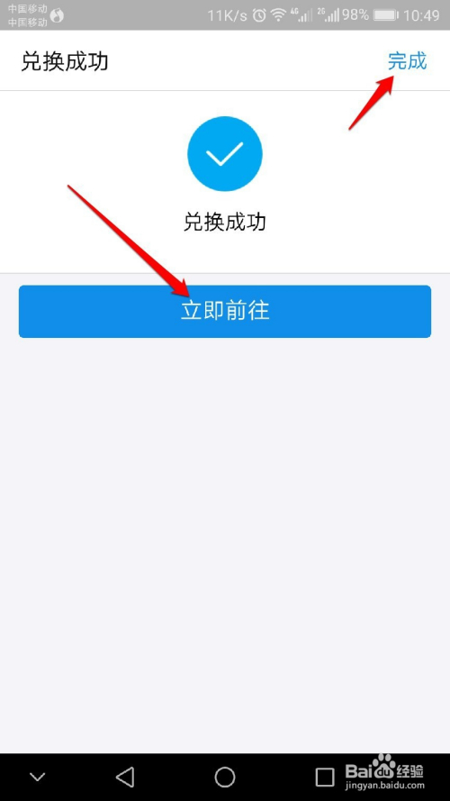 兑换当作功,点击【完当作】返回,或点击【当即前去】查看当前残剩免费额度