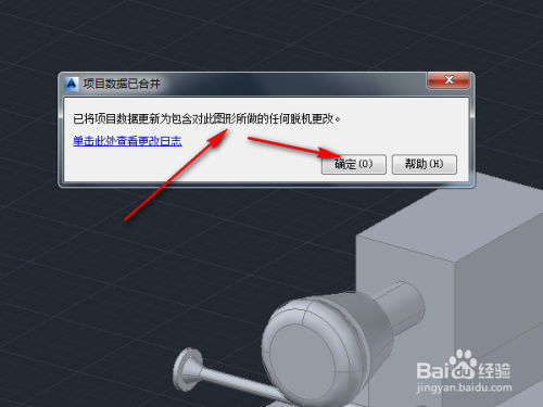 这是弹出了一个对话框“已将项目数据更新为包含对此图形所做的任何脱机更改。”,点击确定。