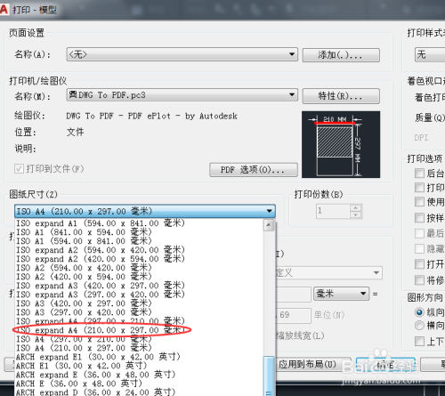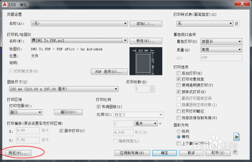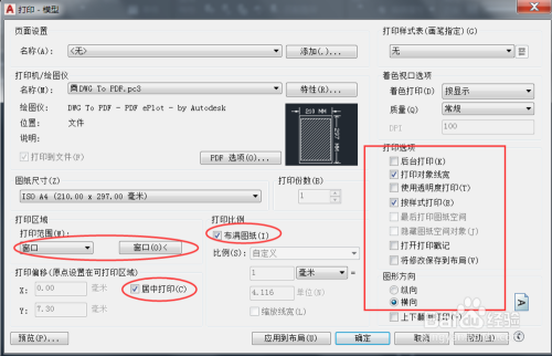 打印名称留空,打印机/画图仪名称选择为“DWG To PDF.pc3”。
