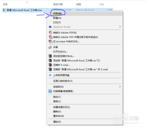 右键单击新建的excel文档,选择打开号令。