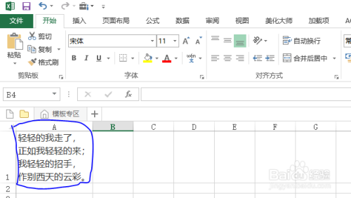 教程以在A1单位格为例,实现换行技巧,输入如下内容: