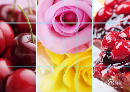 按【Ctrl+R】打开标尺,在标尺上按住鼠标左键并标的目的下and标的目的右拖动,建立多条参考线,如图示。