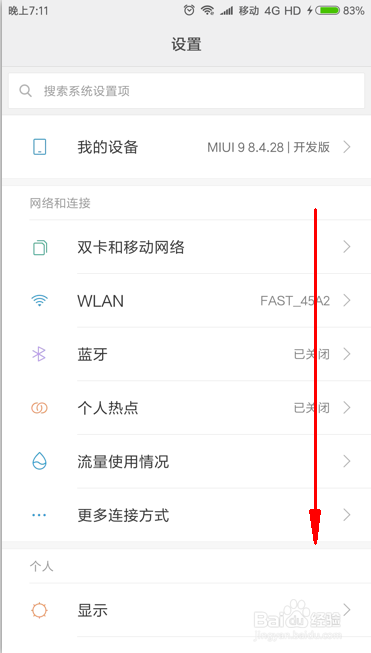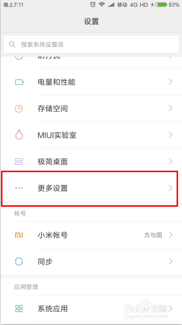 进入设置界面后,把菜单标的目的下翻找到更多设置选项。