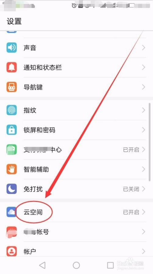 设置窗口中,选择云空间选项。