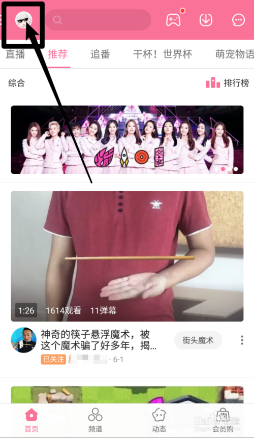 首先打开哔哩哔哩,点击【头像】(这里利用移动端进行演示)