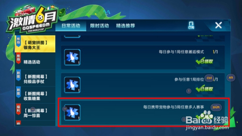 “携带宠物加入3局肆意多人赛事”可以领到一块拼图;