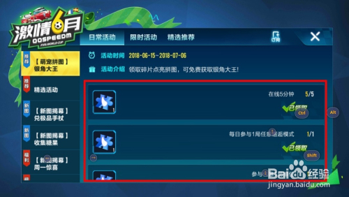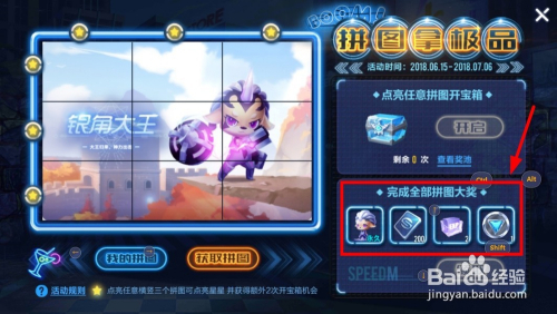 完当作上述要求后,天天会获得至少4个银角碎片,凑齐拼图后,点击QQ飞车界面的“拼图”选项