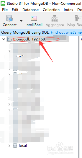 如许就在左侧的资本办理器中,睁开了办事器下所有的MongoDB数据库了,如下图所示: