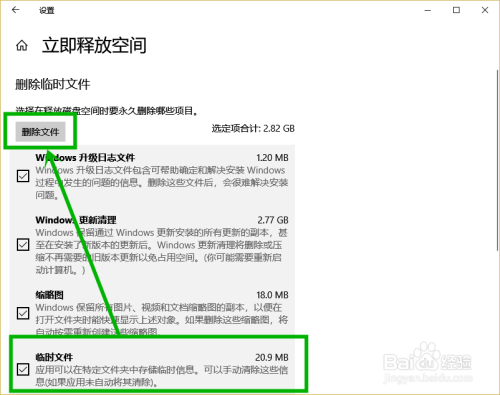 在打开的界面期待扫描完毕后,确认【姑且文件】处于选中状况后点击【删除文件】按钮,期待系统清理完文件就行了
