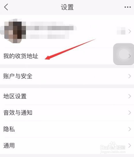 之后就进入设置页面了,选择第一个选择选项,起头点窜收货地址。